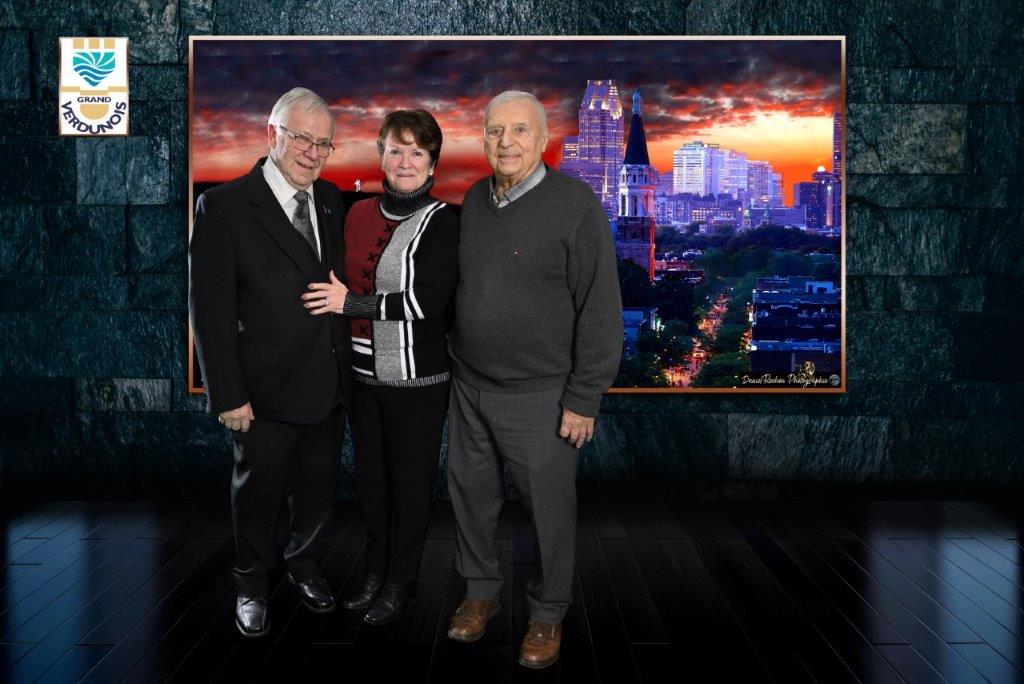 - Le grand concepteur du visuel de la soirée, Gilles Dubien, en compagnie de la Grande Verdunoise Francine Gravel et de Normand Houle, le passeur de mémoire, de la Société d’histoire et de généalogie de Verdun.