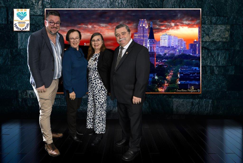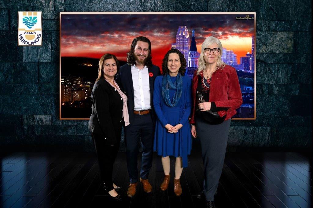- Kathie Cimon, directrice de la Caisse de L’Île-des-Sœurs-Verdun, Gabriel Chauvin, du Réseau Affaires, la mairesse Marie-Andrée Mauger et Élise Bérard du Réseau Affaires.