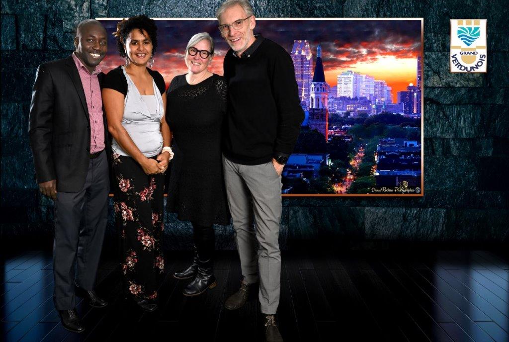 - En nomination pour la Personnalité d’affaires, Jodler Vital, et son épouse Myriam Bartholemi, accompagnent le charmant couple formé par Suzy Peate et Michel Cusson, le talentueux photographe, graphiste, rédacteur, idéateur, faiseur de miracles d’ExploreVerdunIDS.com.