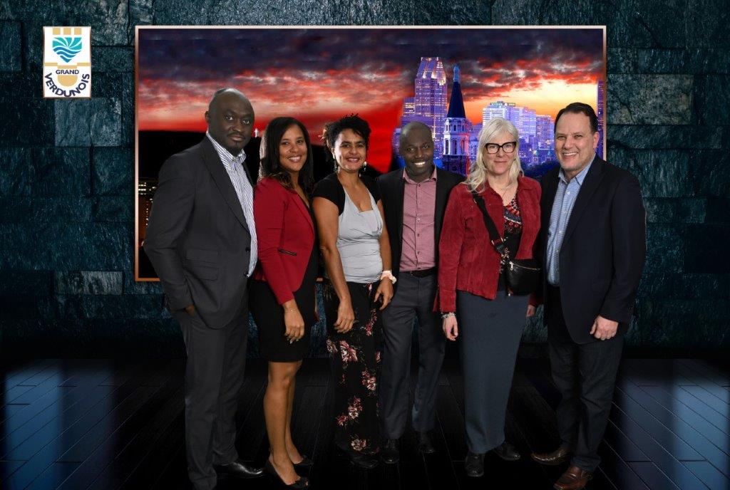 - Dans l’ordre habituel, Patrice Tshiabola, de la Banque CIBC et son épouse Rachel, Myriam Bartholemi, Jodler Vital, Elise Bérard, du Réseau Affaires Verdun, et Eric Douay