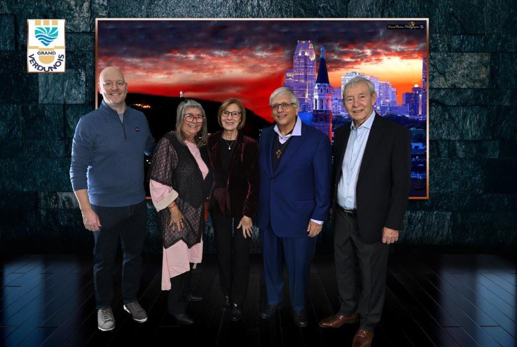 - L’ex-maire de Verdun, Georges Bossé, en compagnie de Laurent Thériault, sa compagne Élaine Surprenant, le curé de l’église Notre-Dame-des-Sept-Douleurs, Laurent Ravenda, et Gilles Beaudry.