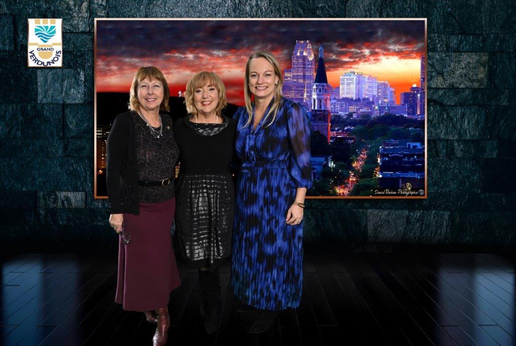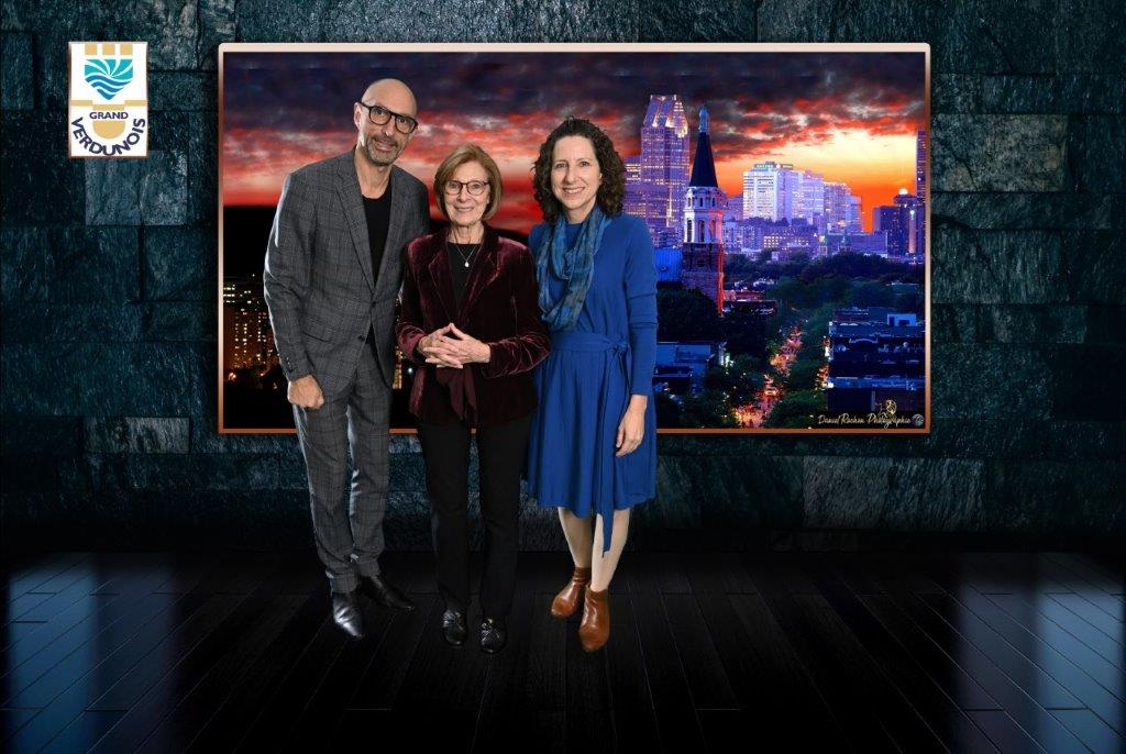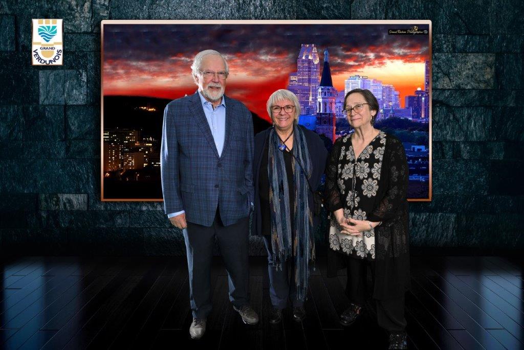 - Le grand concepteur du visuel de la soirée, Gilles Dubien, en compagnie de la Grande Verdunoise Francine Gravel et de Normand Houle, le passeur de mémoire, de la Société d’histoire et de généalogie de Verdun.